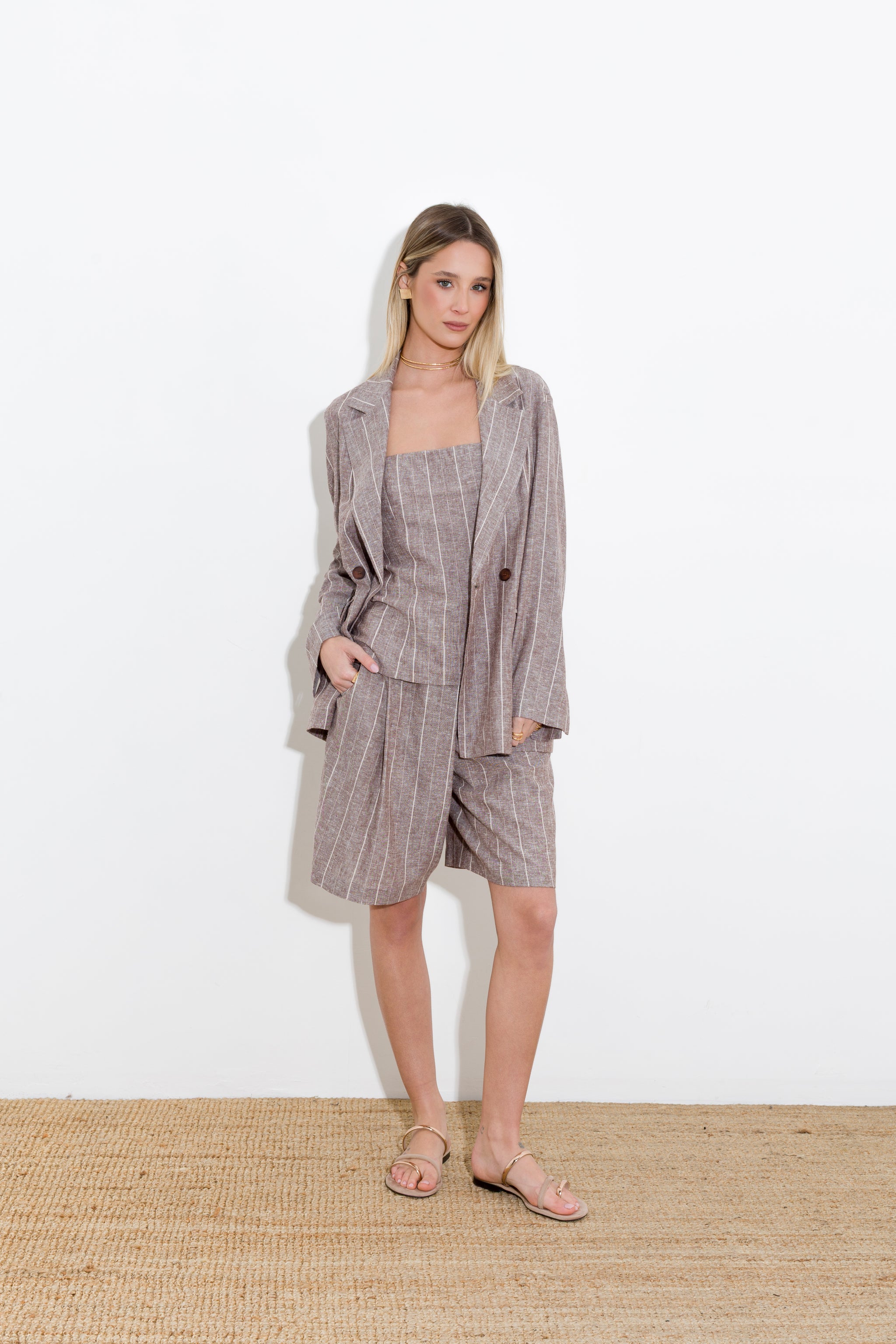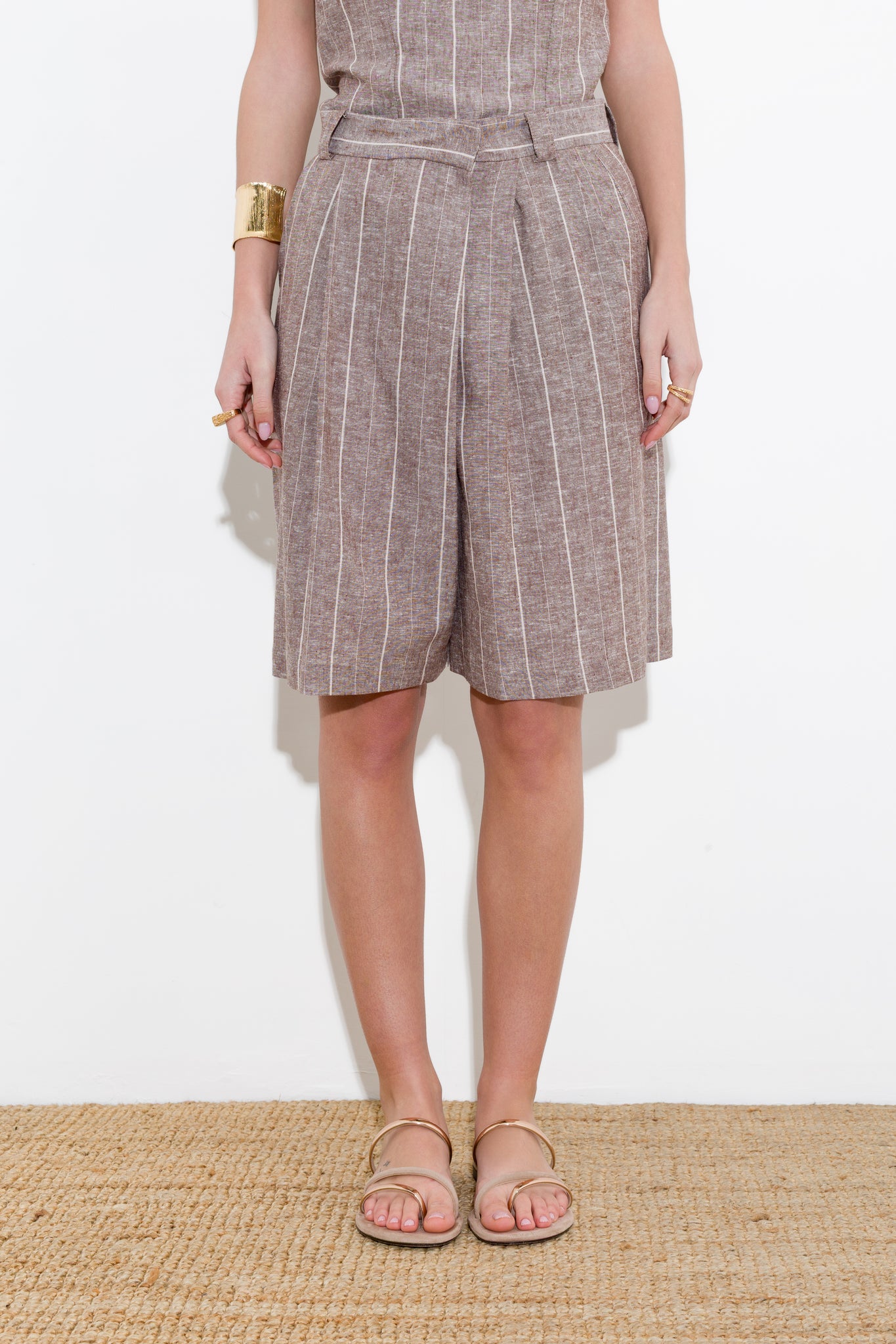 PINSTRIPED BERMUDA SHORTS IN LINEN VISCOSE