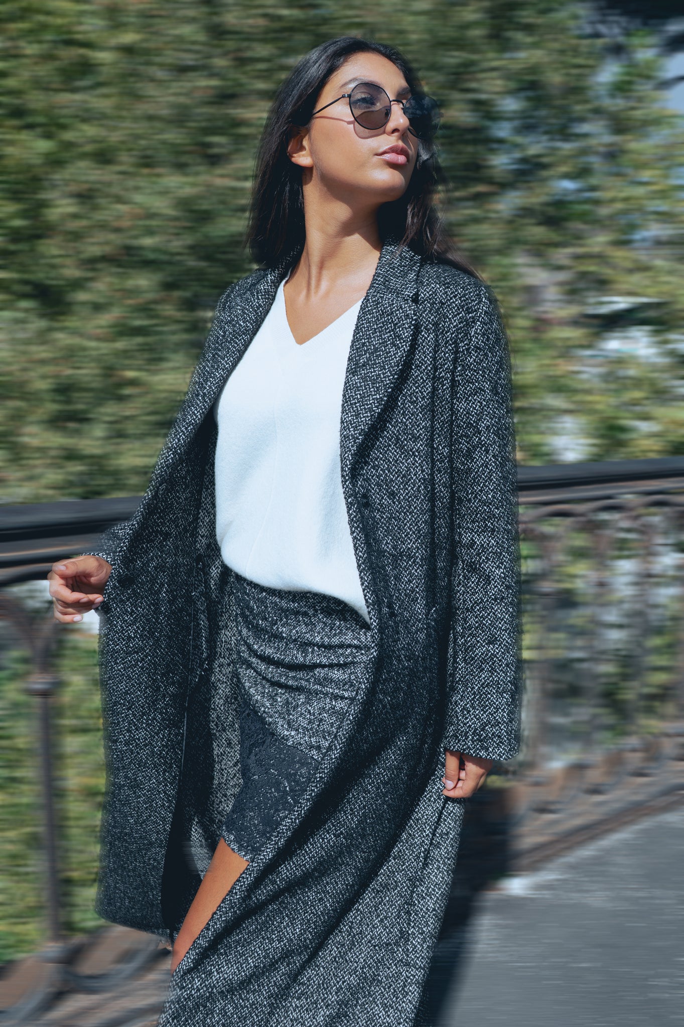 • Long coat with lapel collar