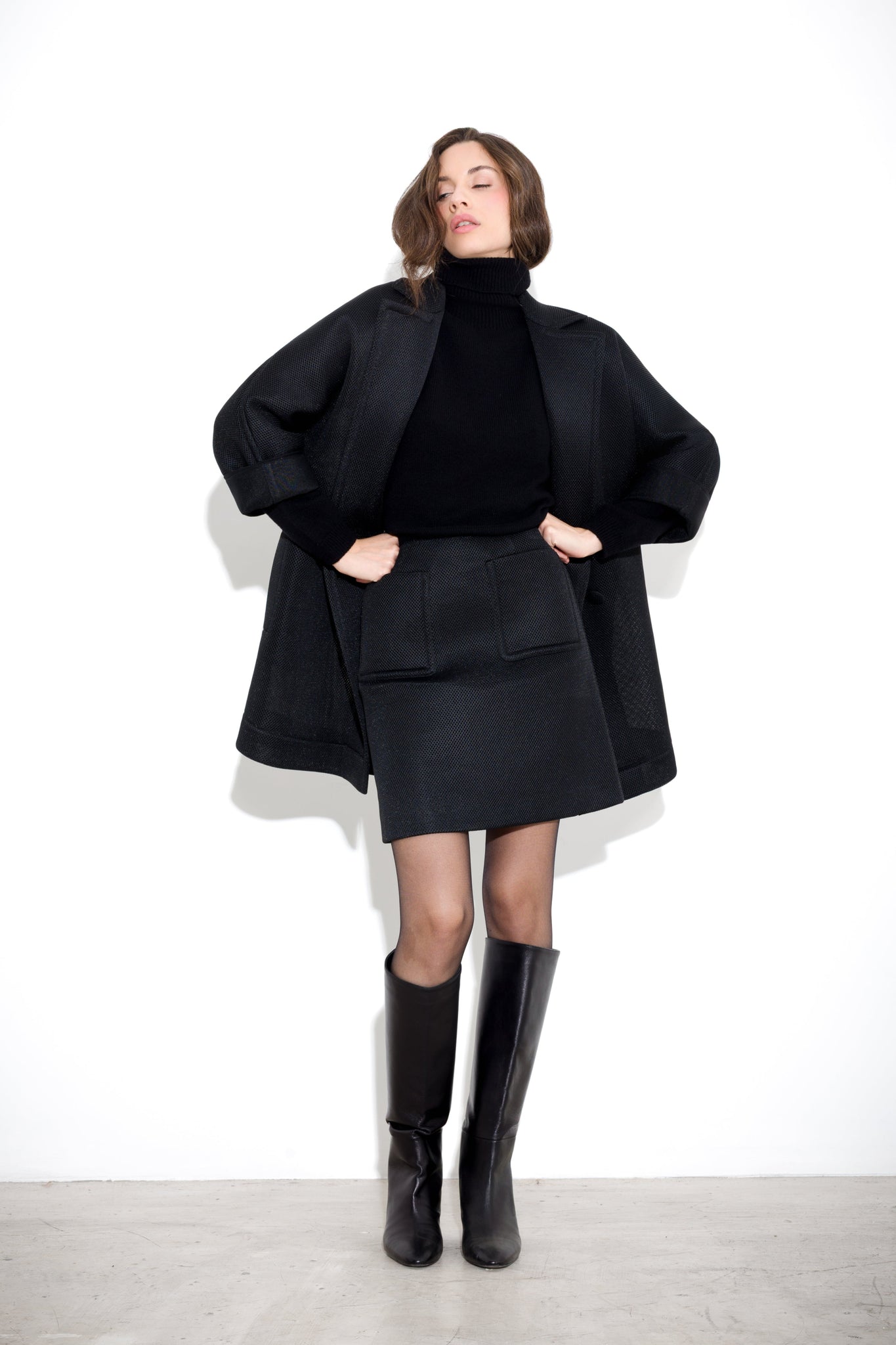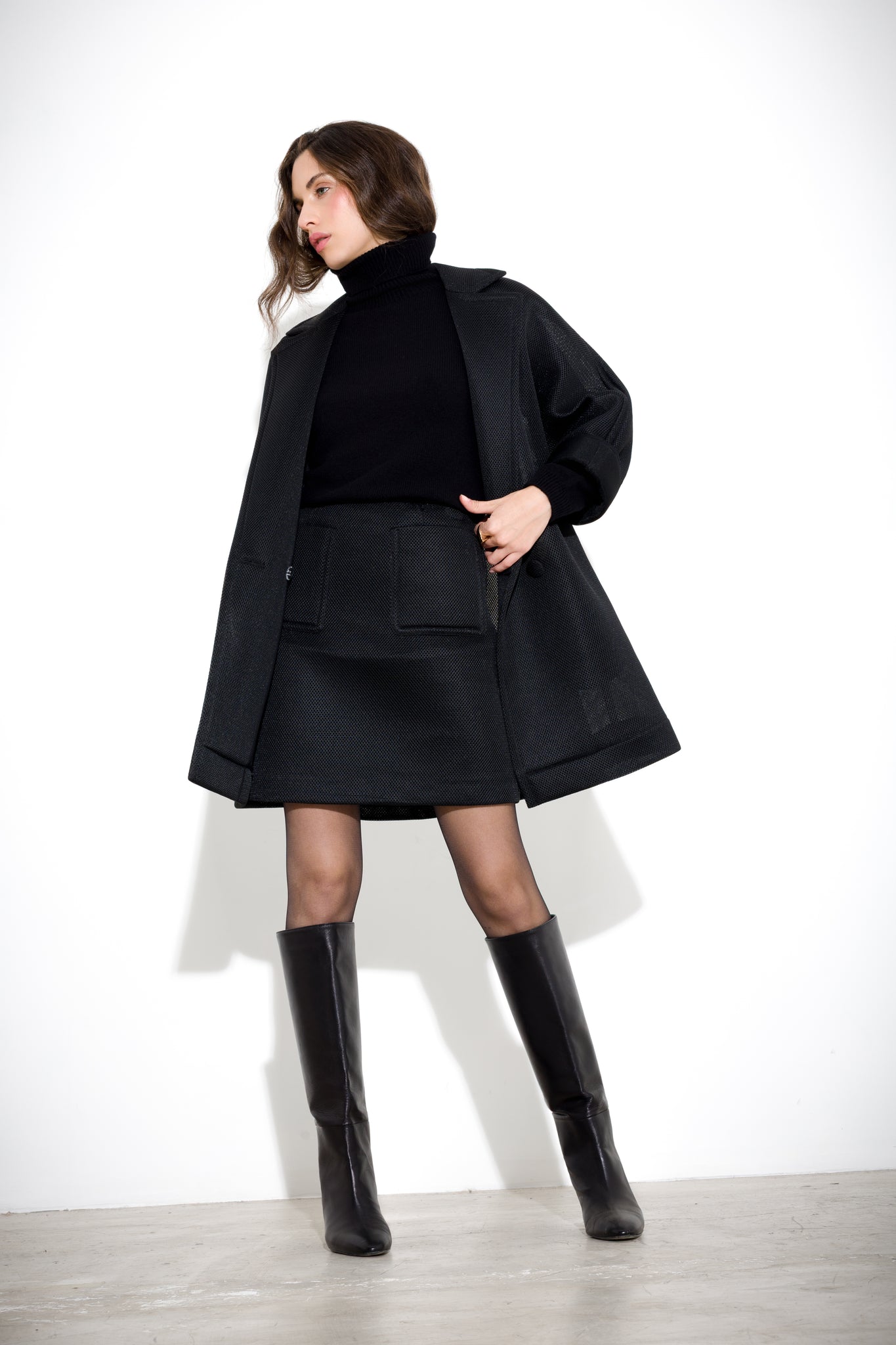 The model is 175 cm tall and wears a size 40 Reference: C255-363_NERO