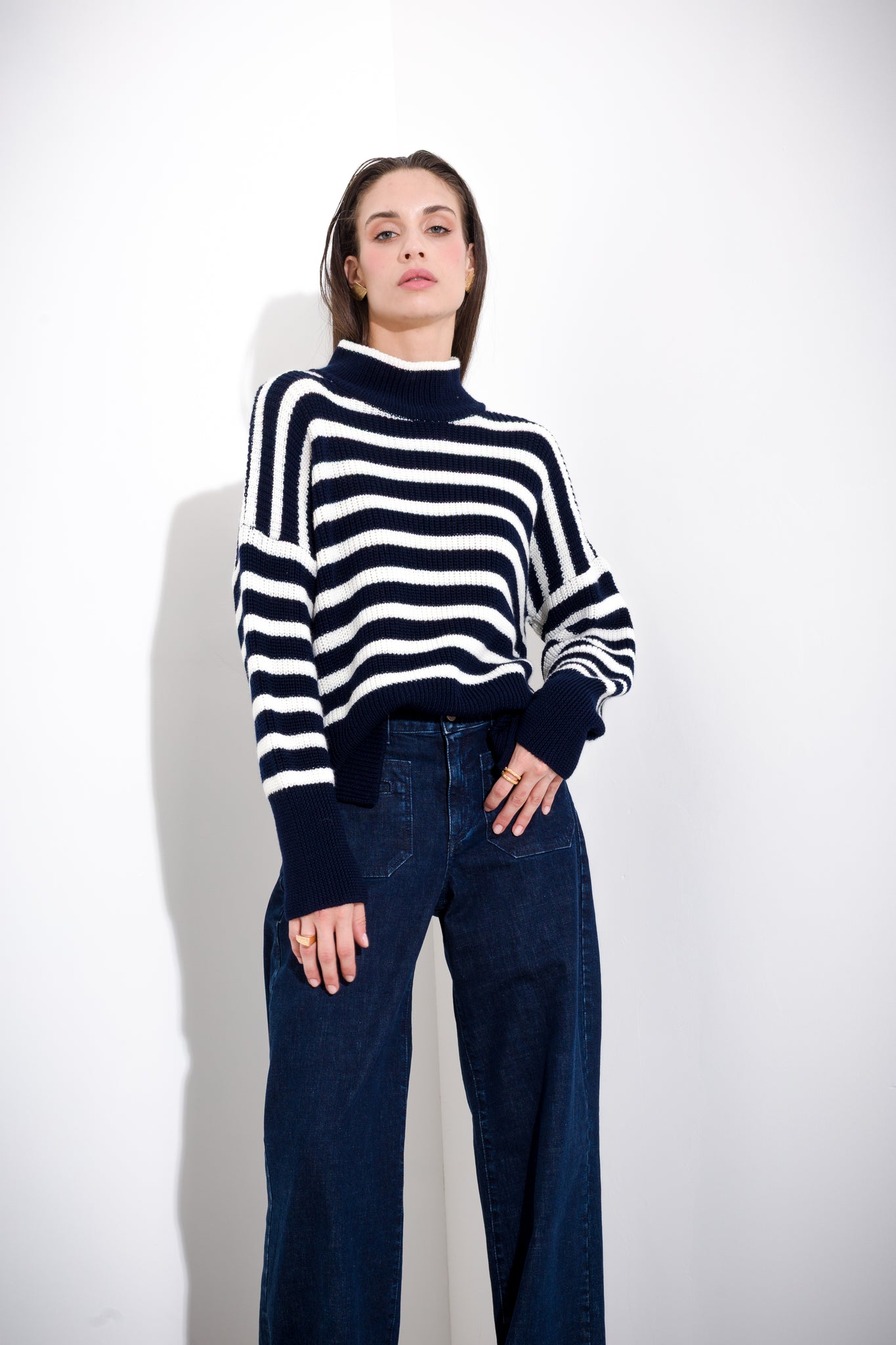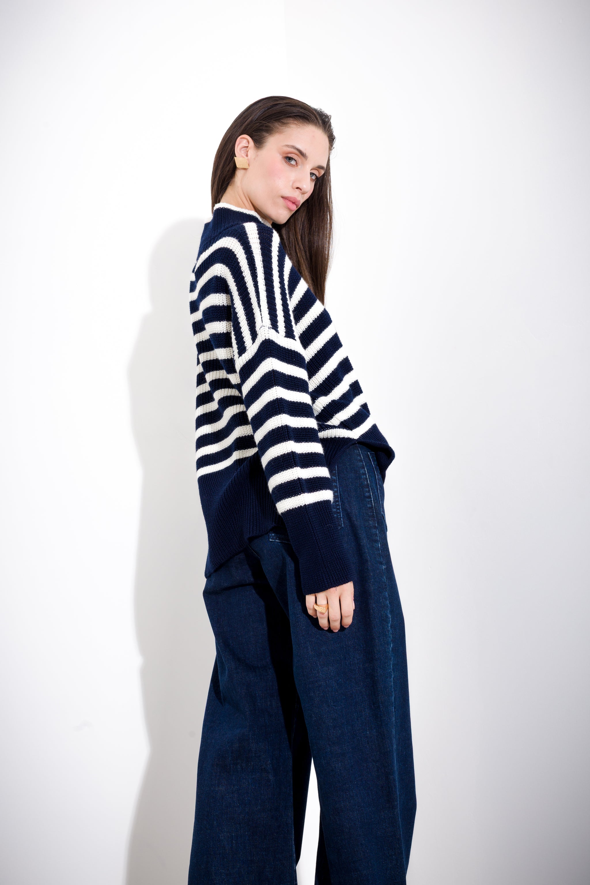 Maglia lupetto con collo alto a righe, realizzata in un pregiato misto lana che combina calore e comfort. Ideale per le giornate più fresche, questa maglia offre una vestibilità avvolgente e morbida al tatto, assicurando protezione senza rinunciare allo stile. Perfetta da indossare sotto giacche o da sola per un look casual ma curato, è un capo versatile che unisce funzionalità ed eleganza. Le righe sottili aggiungono un tocco di originalità senza esagerare, rendendo questa maglia un basico sofisticato per il guardaroba invernale.