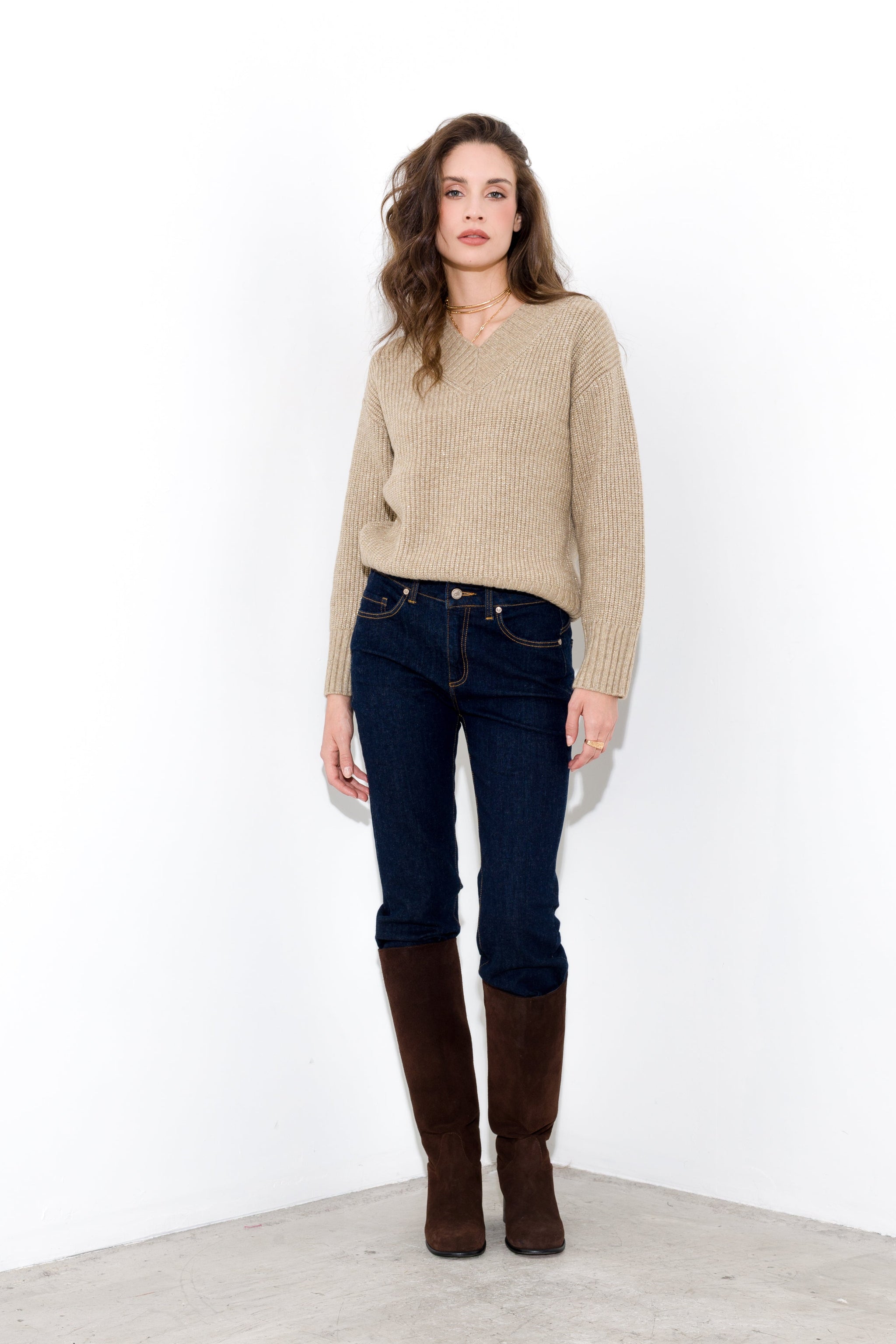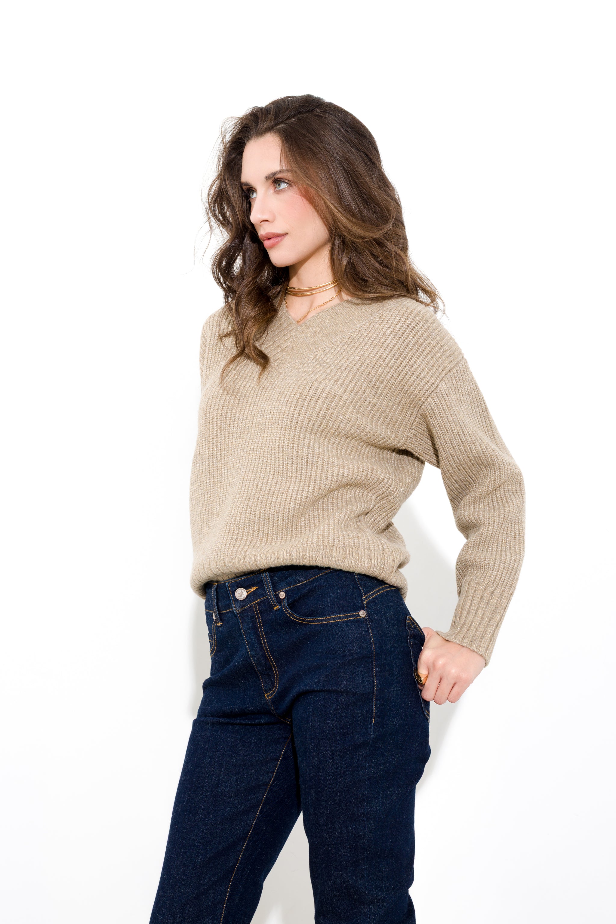 Maglia scollo a v filo lurex