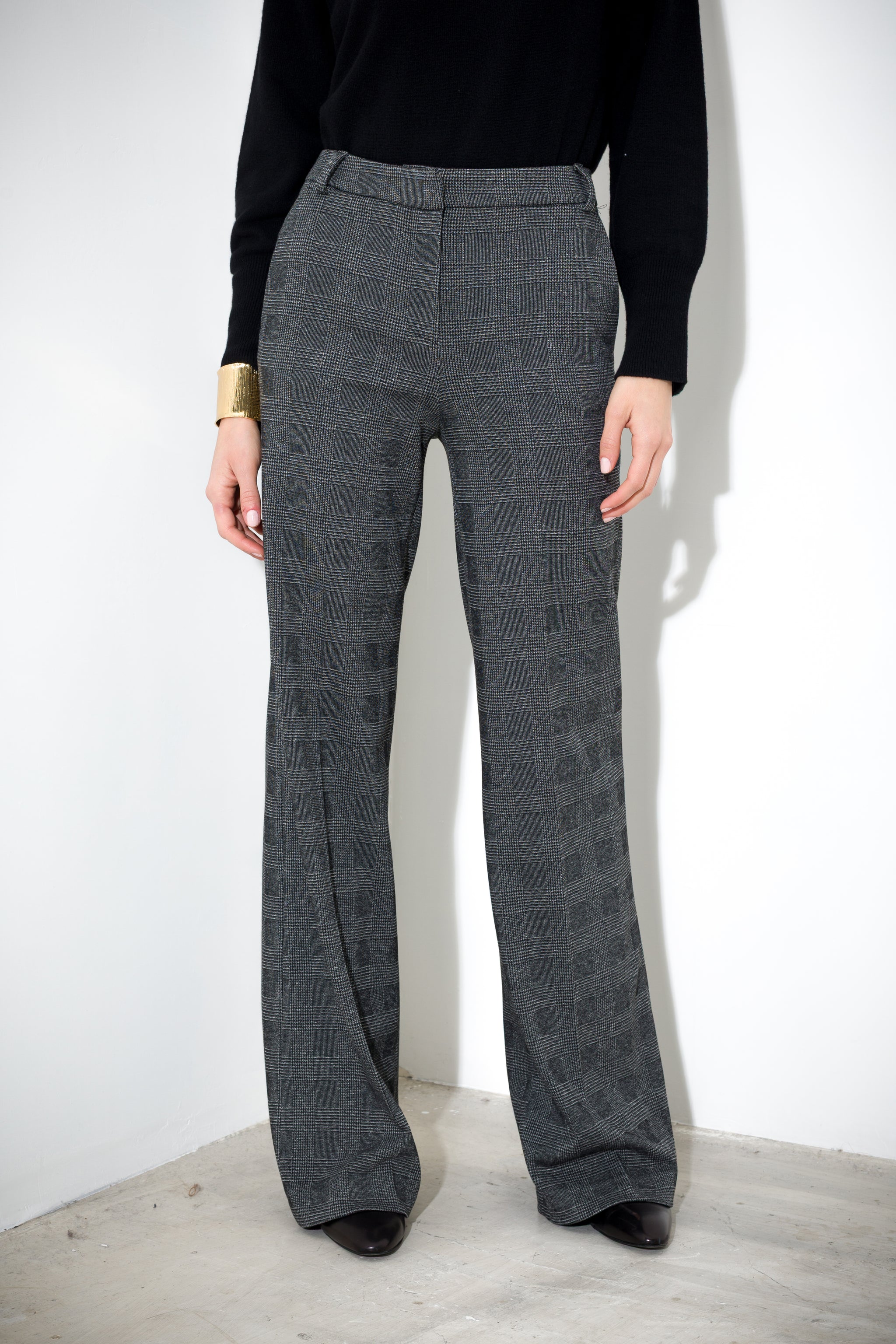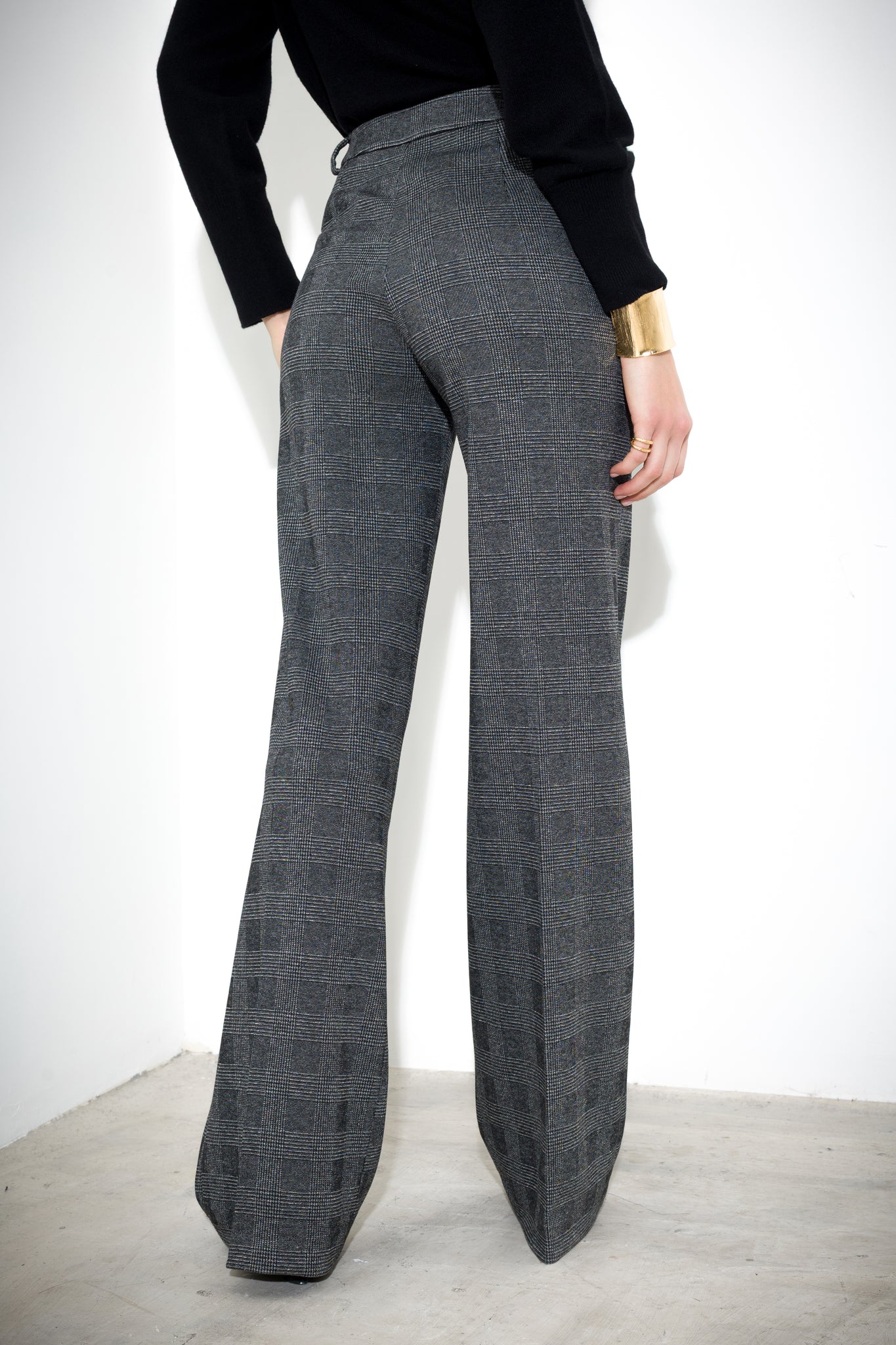 Pantalone a palazzo in galles, perfetto per chi ricerca eleganza e comfort. Caratterizzato da tasche alla francese sul davanti che garantiscono praticità, cintino con passanti in vita per una vestibilità sicura e regolabile. La piega stirata sul davanti mantiene un aspetto impeccabile e raffinato, ideale per occasioni formali o per un look sofisticato nel quotidiano. Chiusura con zip e patta, completata da bottone, assicura solidità e stile. Il tessuto in galles conferisce un tocco di classe senza tempo, perfetto per creare outfit versatili e sempre eleganti.
