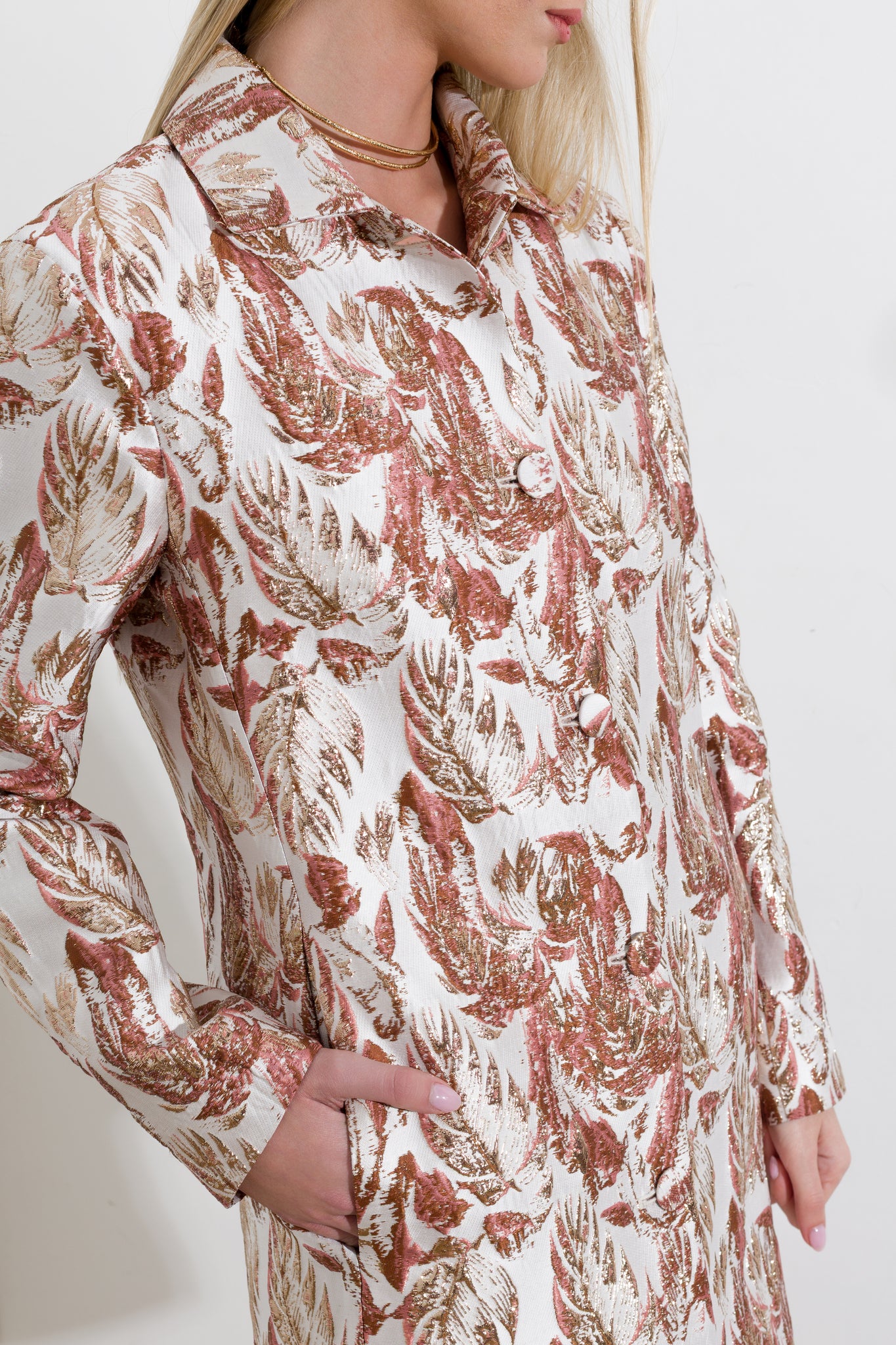 Brocade fabric overcoat