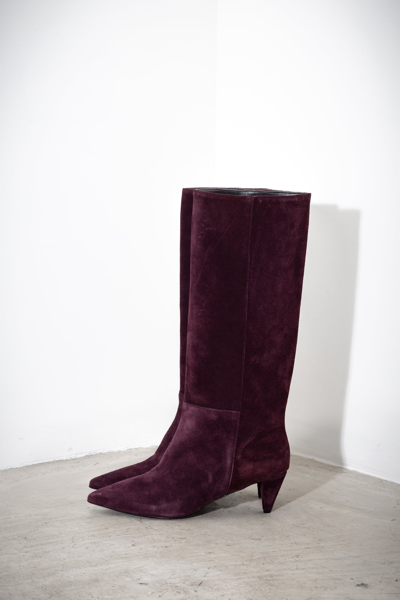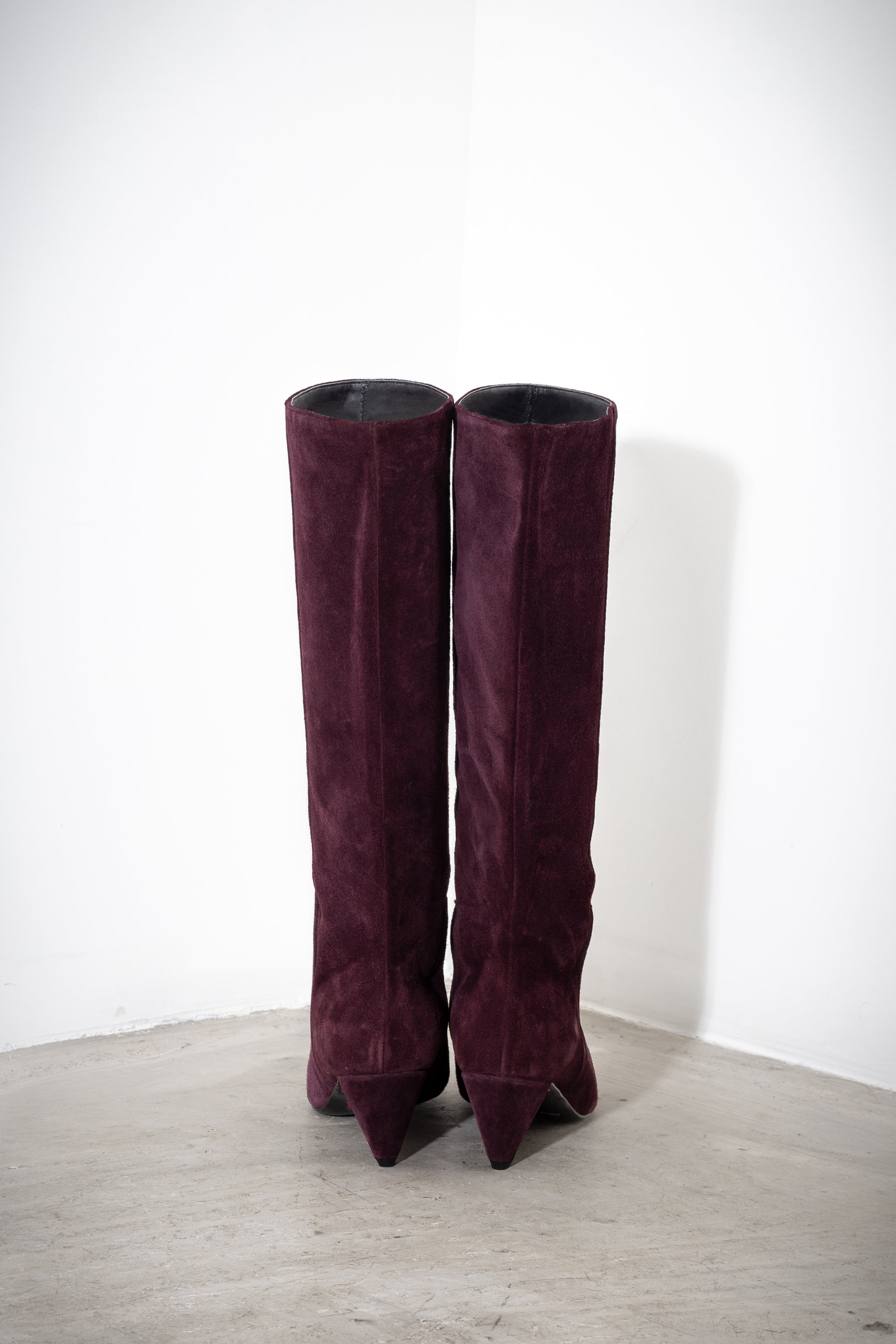 Contemporary femininity and a metropolitan look define these soft suede boots. The tube shaft, pointed toe, and comfortable heel ensure a bold and elegant look.