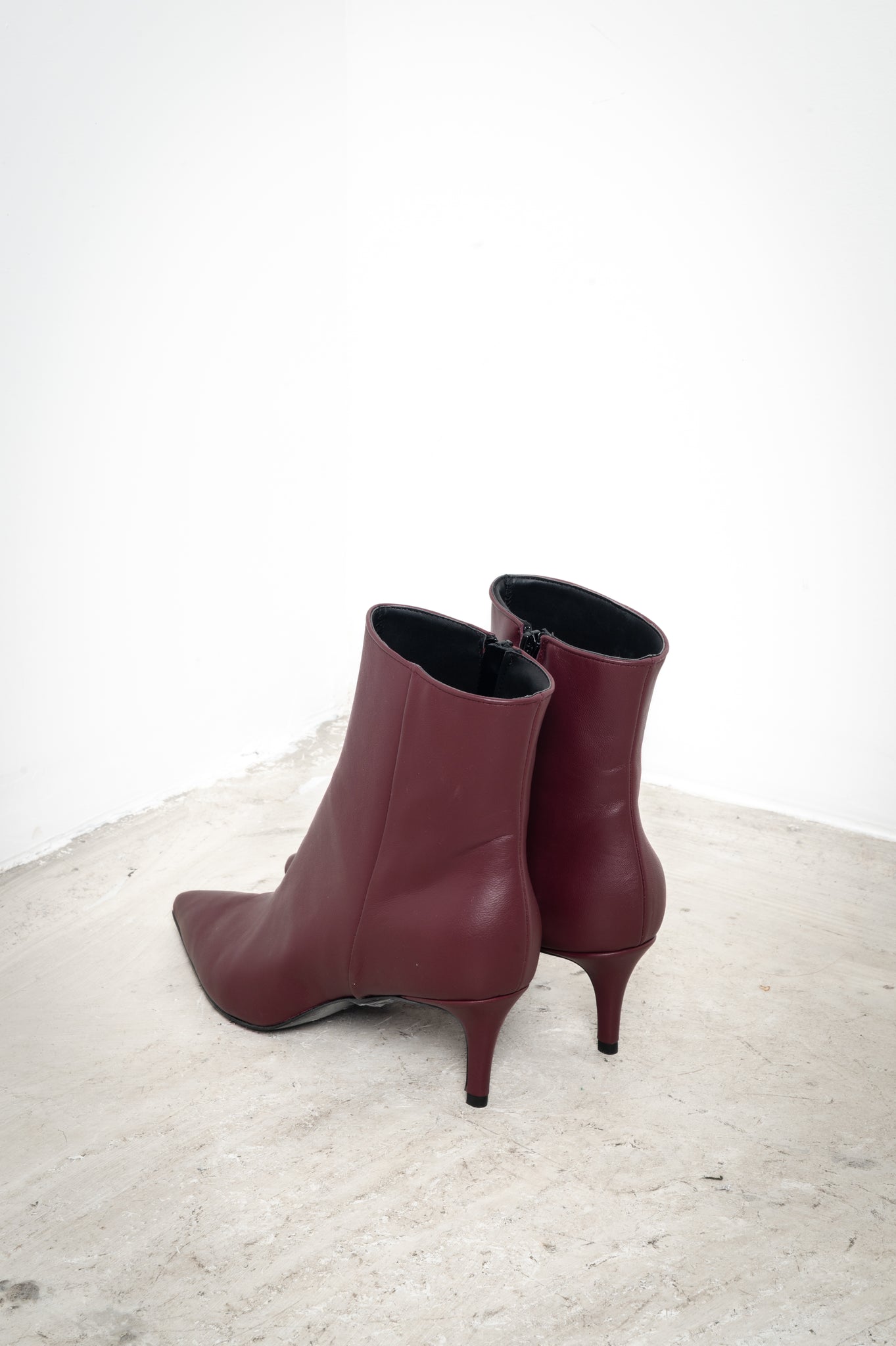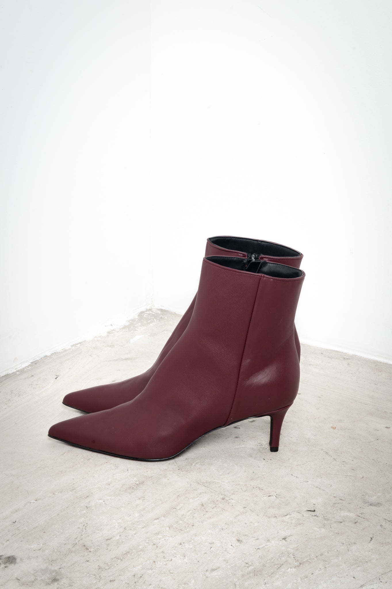 These low-heeled ankle boots with a pointed toe are elegant and refined. Crafted from high-quality materials, they offer a comfortable fit and a slim silhouette thanks to the tapered toe. Perfect for completing both casual and more sophisticated looks.