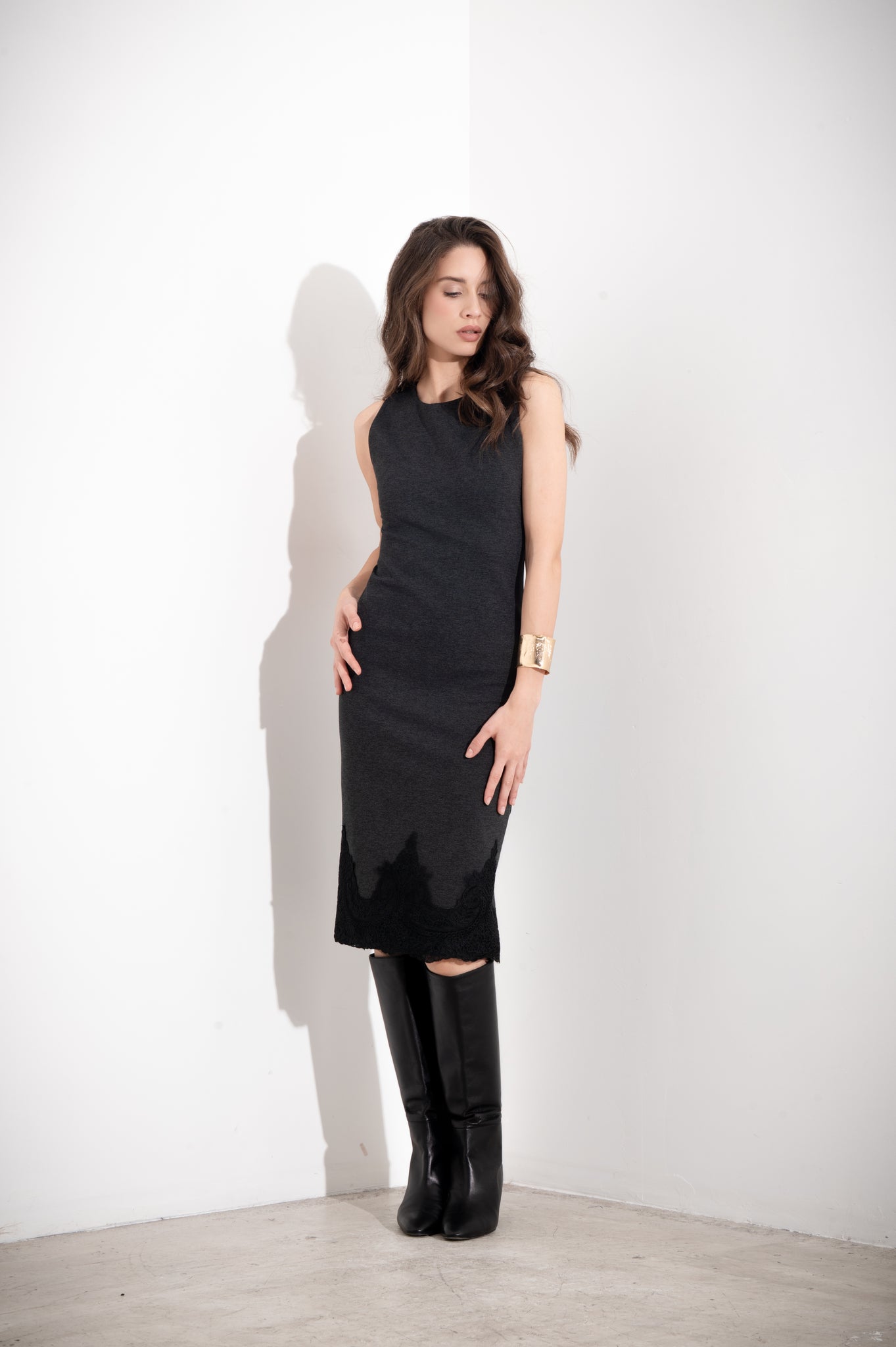 Abito midi con pizzo