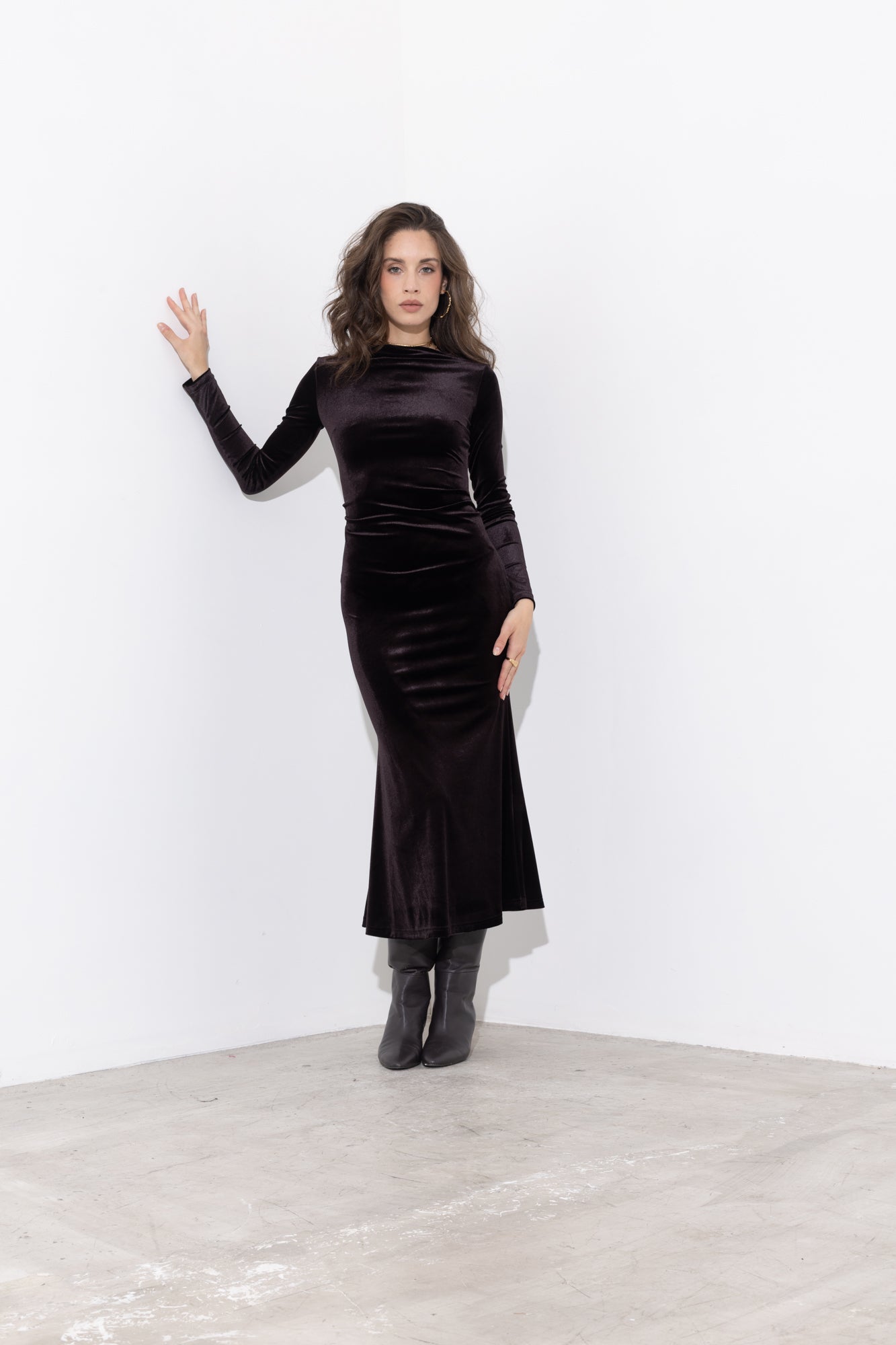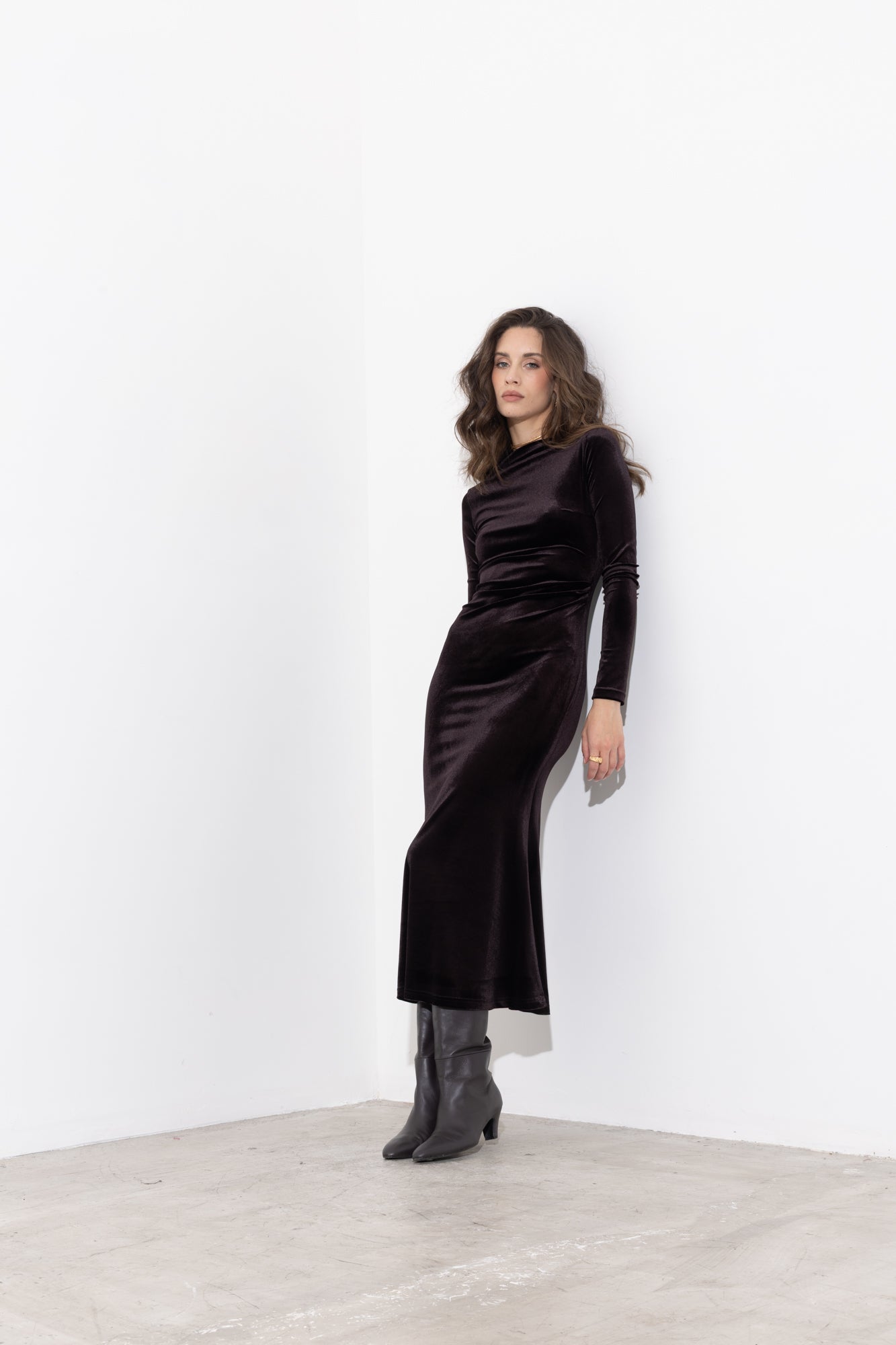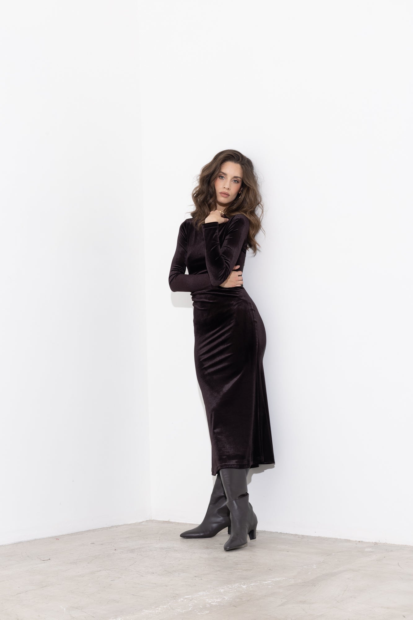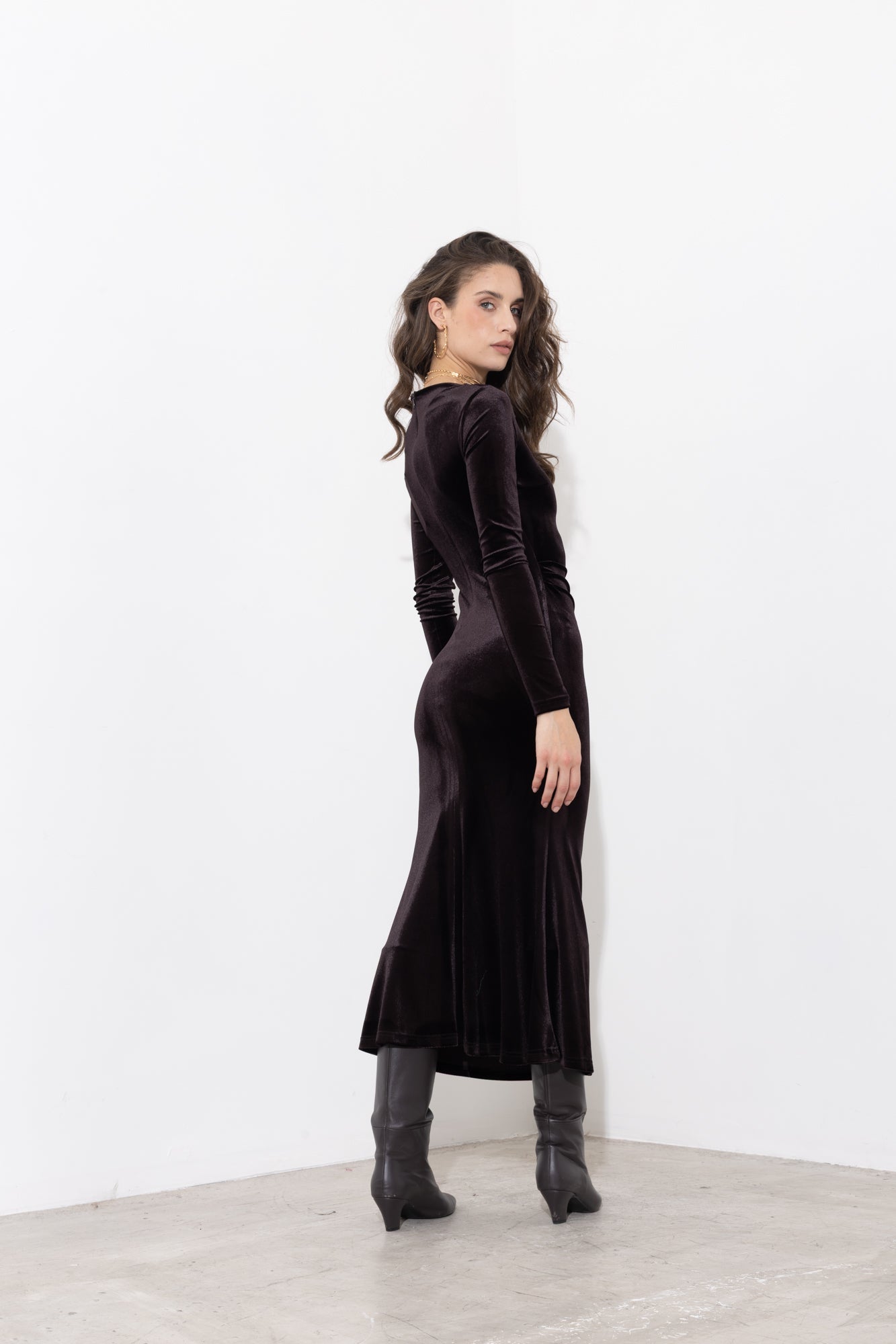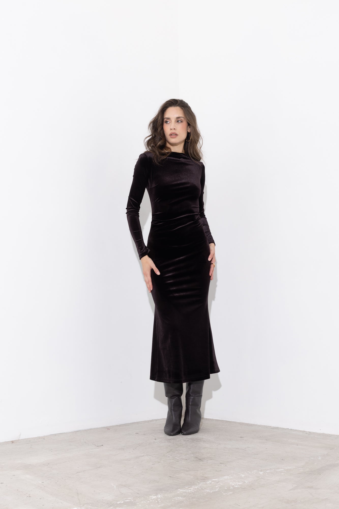 Abito midi in velluto ciniglia