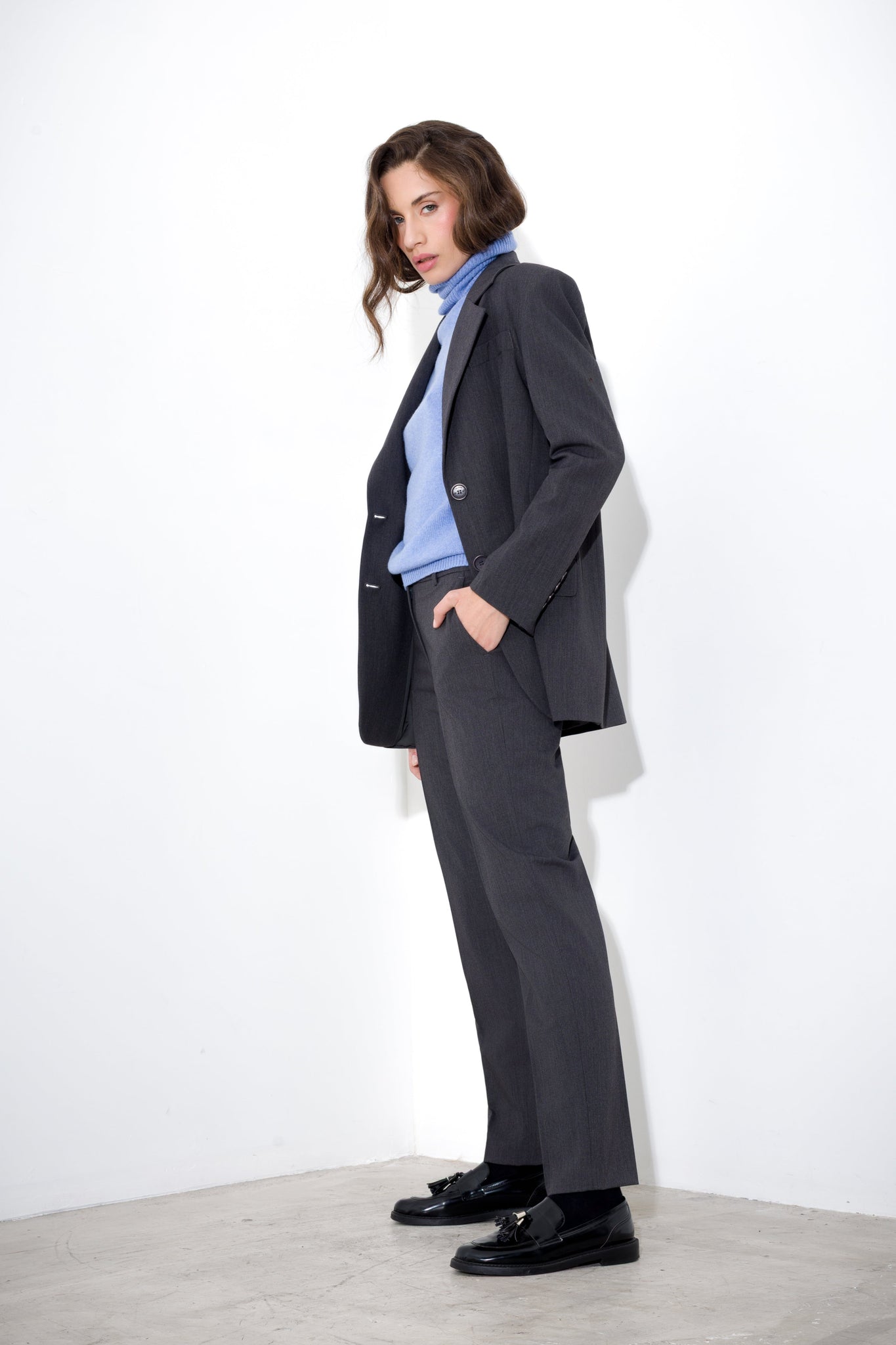 Pantalone dritto in tela lana